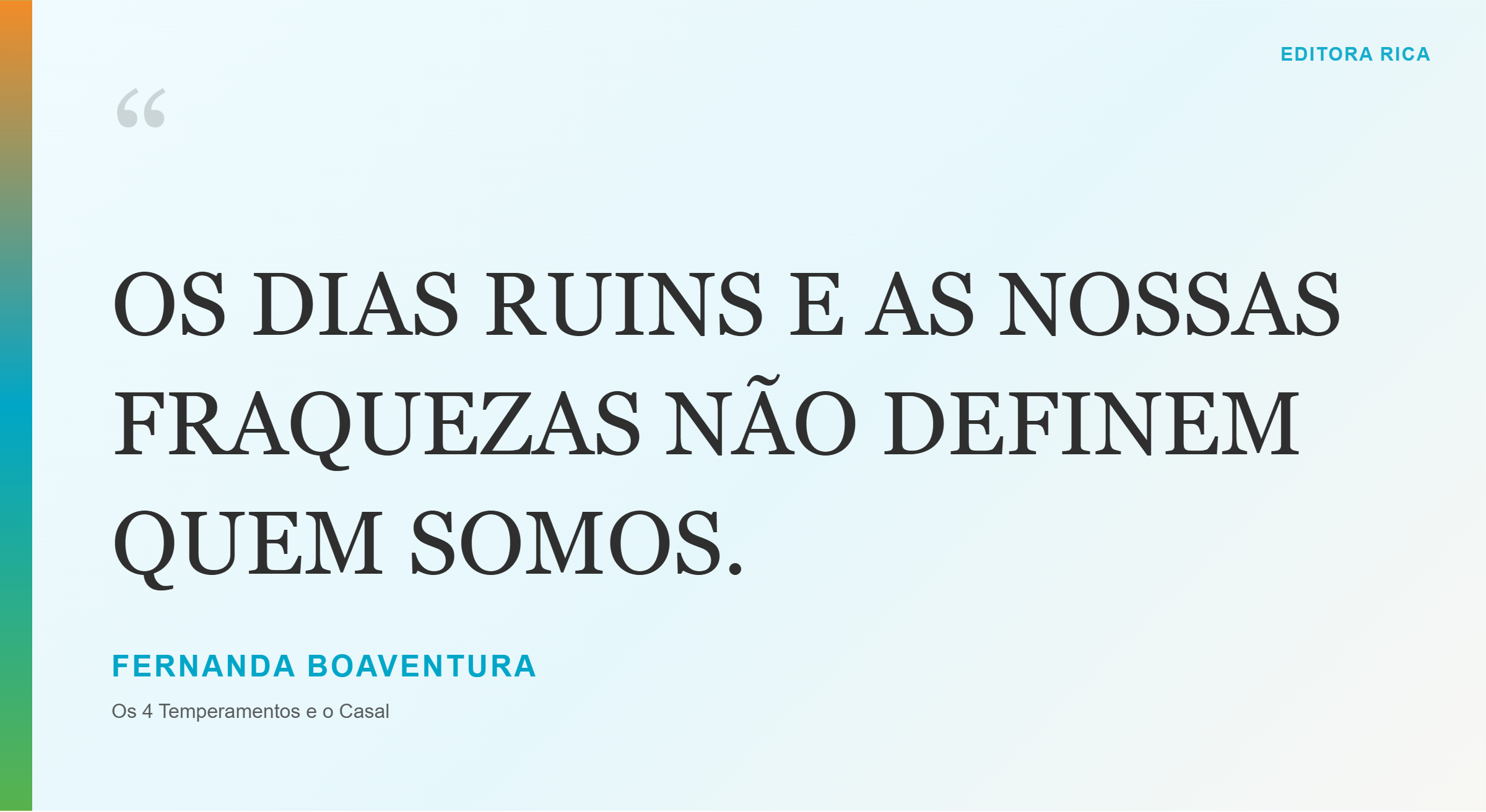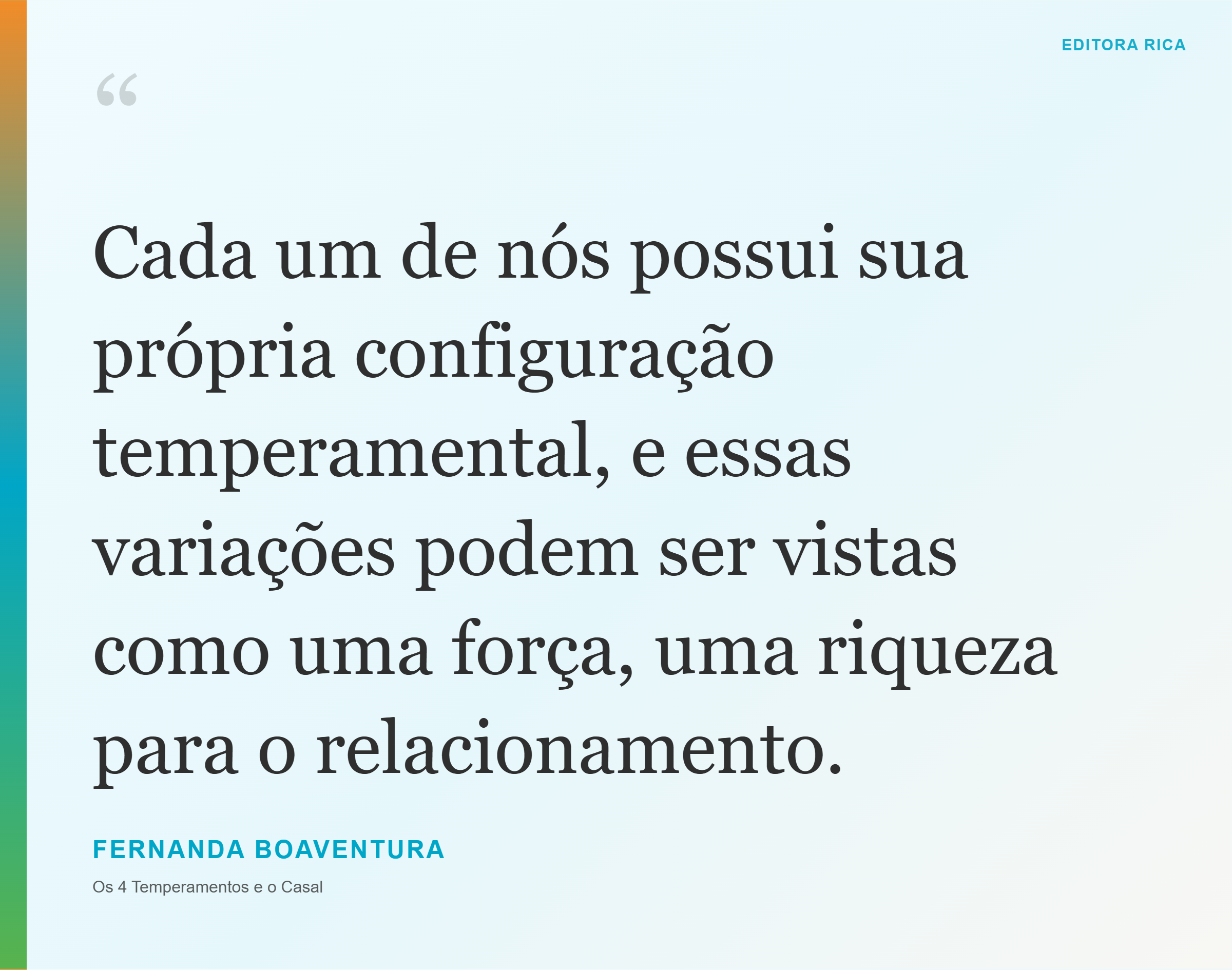 Em Os 4 Temperamentos e o Casal, Fernanda Boaventura conduz o leitor a uma jornada de autoconhecimento e compreensão dentro dos relacionamentos amorosos. A obra explora como os quatro temperamentos clássicos — sanguíneo, colérico, fleumático e melancólico — influenciam a maneira como cada pessoa ama, se comunica e constrói vínculos.