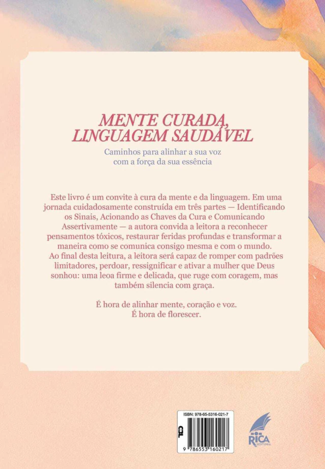 Este livro é um convite à cura da mente e da linguagem. Em uma jornada cuidadosamente construída em três partes — Identificando os Sinais, Acionando as Chaves da Cura e Comunicando Assertivamente — convido você a reconhecer pensamentos tóxicos, restaurar feridas profundas e transformar a maneira como se comunica consigo mesma e com o mundo.