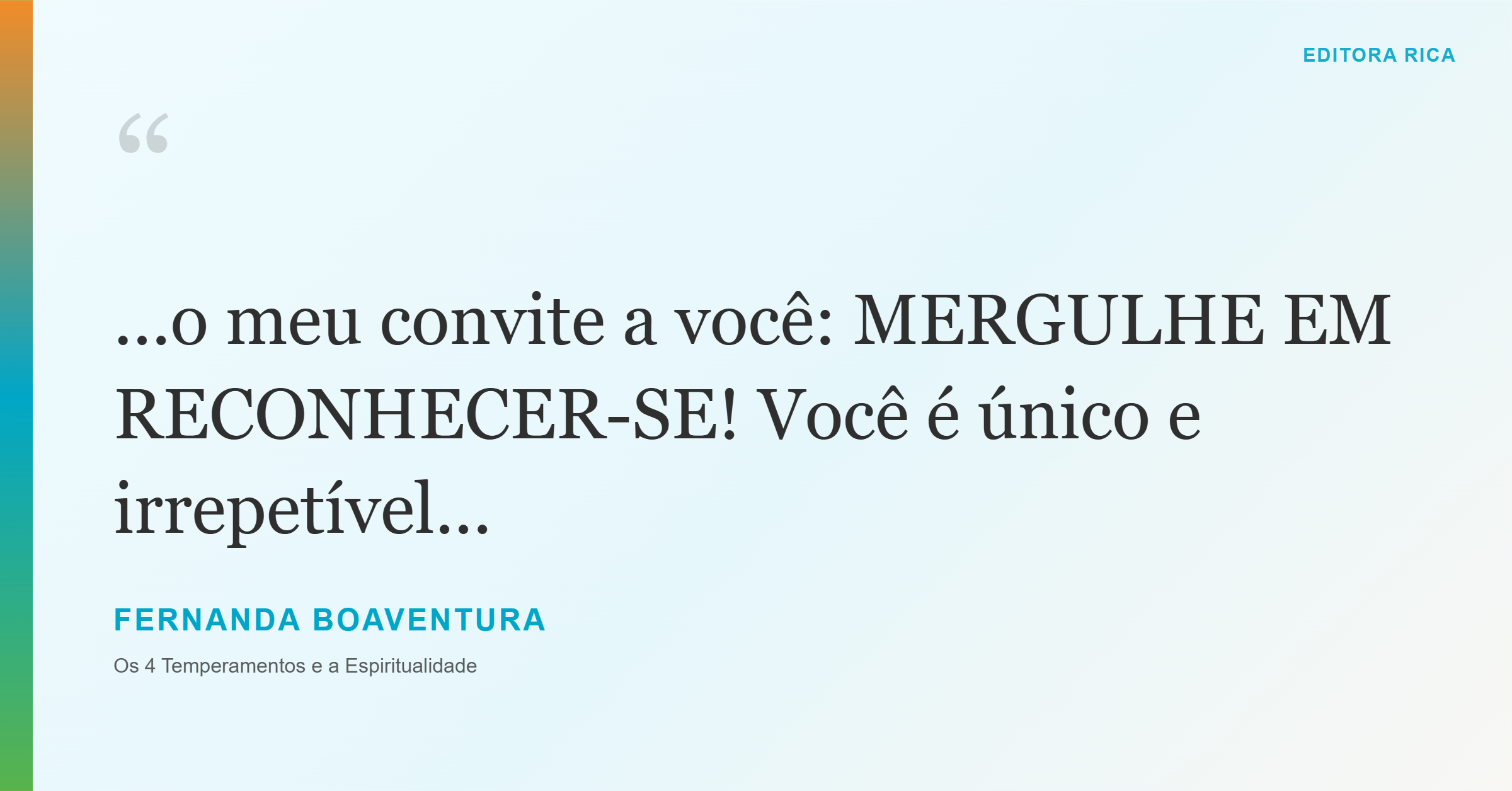 Os 4 Temperamentos e a Espiritualidade apresenta uma jornada profunda de autoconhecimento que conecta a clássica teoria dos quatro temperamentos com o desenvolvimento espiritual. Nesta obra, Fernanda Boaventura conduz o leitor a compreender como os temperamentos — colérico, sanguíneo, fleumático e melancólico — influenciam não apenas a personalidade, mas também a forma como cada pessoa vive sua espiritualidade e seu relacionamento com Deus.
