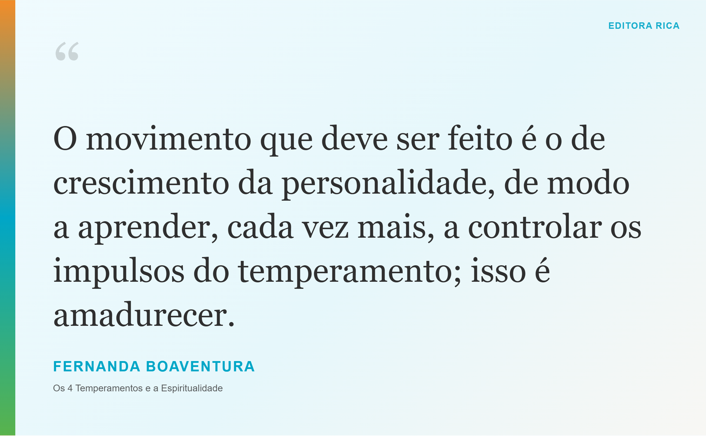 Fernanda Boaventura é formada em Ciências Biológicas, Gestão Pública e Teologia, além de atuar na área de desenvolvimento humano e espiritualidade aplicada. Reconhecida internacionalmente por seu trabalho sobre os quatro temperamentos, ela tem dedicado sua carreira a ensinar princípios de autoconhecimento e amadurecimento emocional.