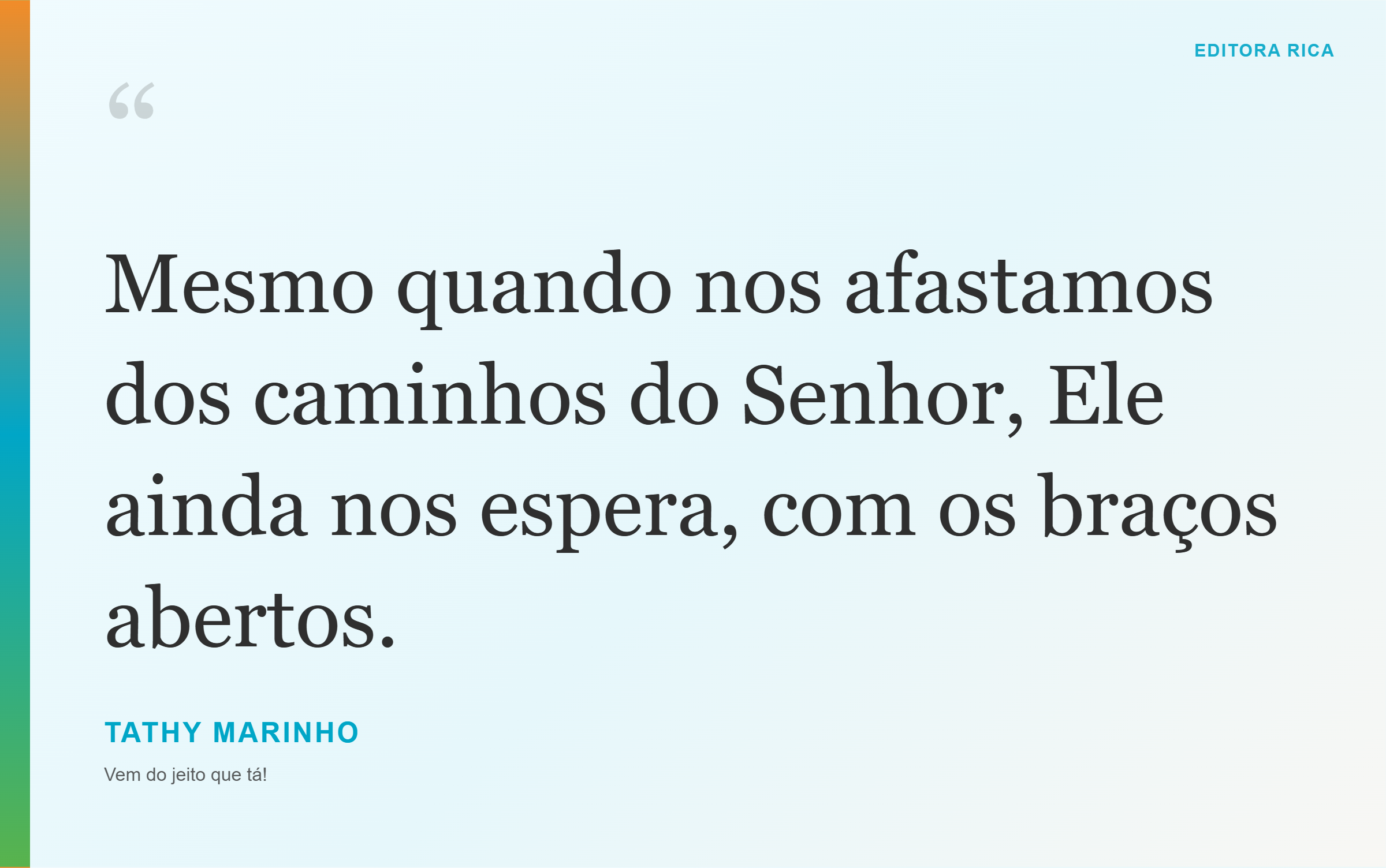 A obra apresenta uma mensagem clara e profundamente humana: não é preciso esperar estar “perfeito” para se aproximar de Deus. Ele nos chama exatamente como estamos.